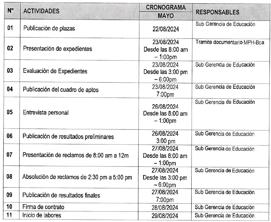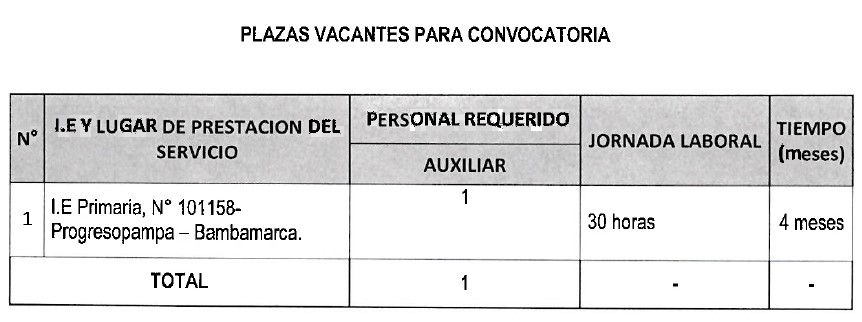 CONVOCATORIA PARA CUBRIR PLAZAS EN LA ACTIVIDAD: ATENCIÓN MUNICIPAL CON DOCENTES, ADMINISTRATIVOS, PSICÓLOGOS, AUXILIARES Y PERSONAL DE SERVICIO, A INSTITUCIONES EDUCATIVAS PÚBLICAS DE LA ZONA URBANA Y RURAL DEL DISTRITO DE BAMBAMARCA, PROVINCIA DE HUALGAYOC, REGIÓN CAJAMARCA. CONVENIO DE COOPERACIÓN INTERINSTITUCIONAL ENTRE LA MUNICIPALIDAD PROVINCIAL DE HUALGAYOC Y UNIDAD DE GESTIÓN EDUCATIVA LOCAL BAMBAMARCA.
